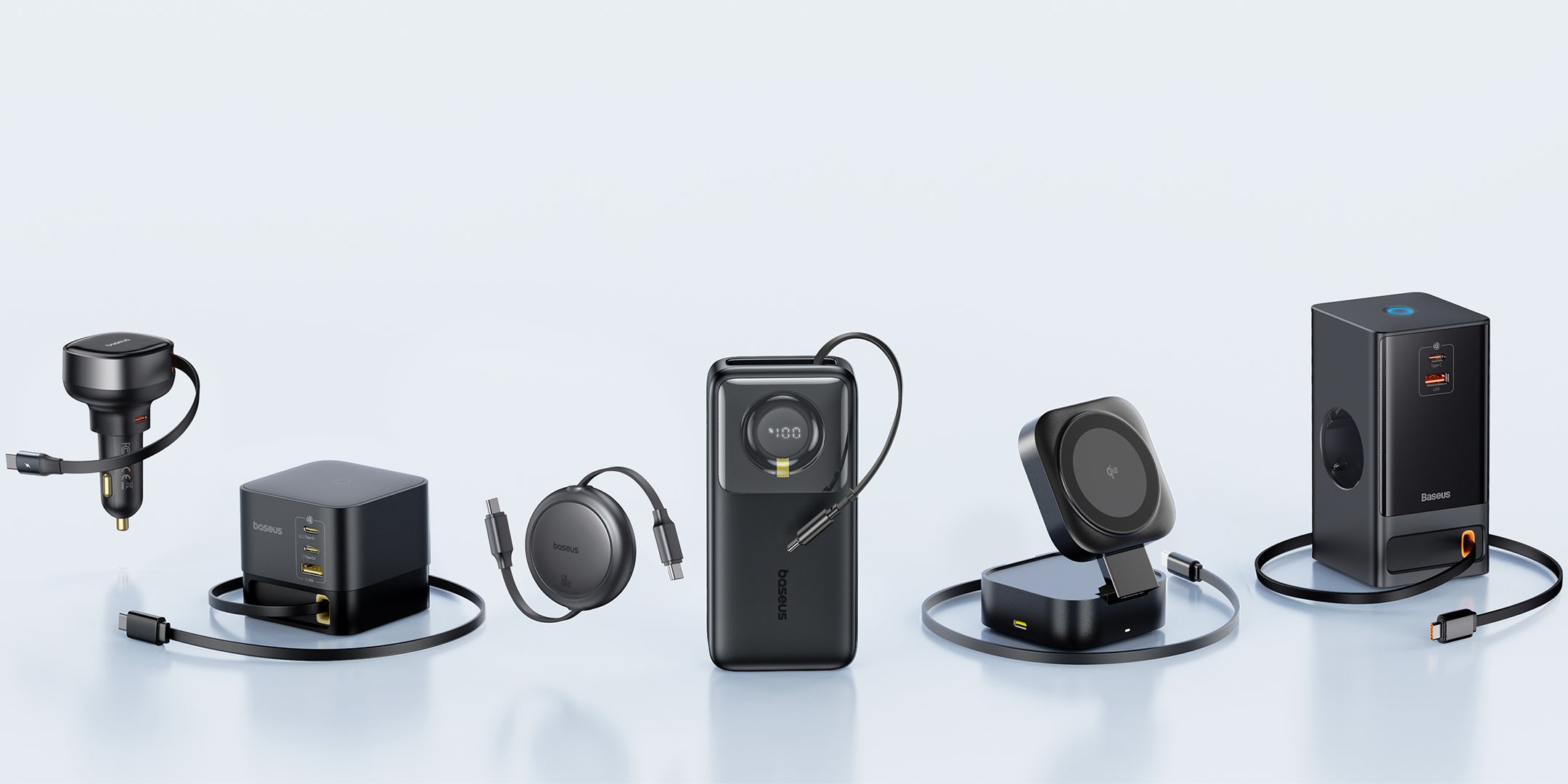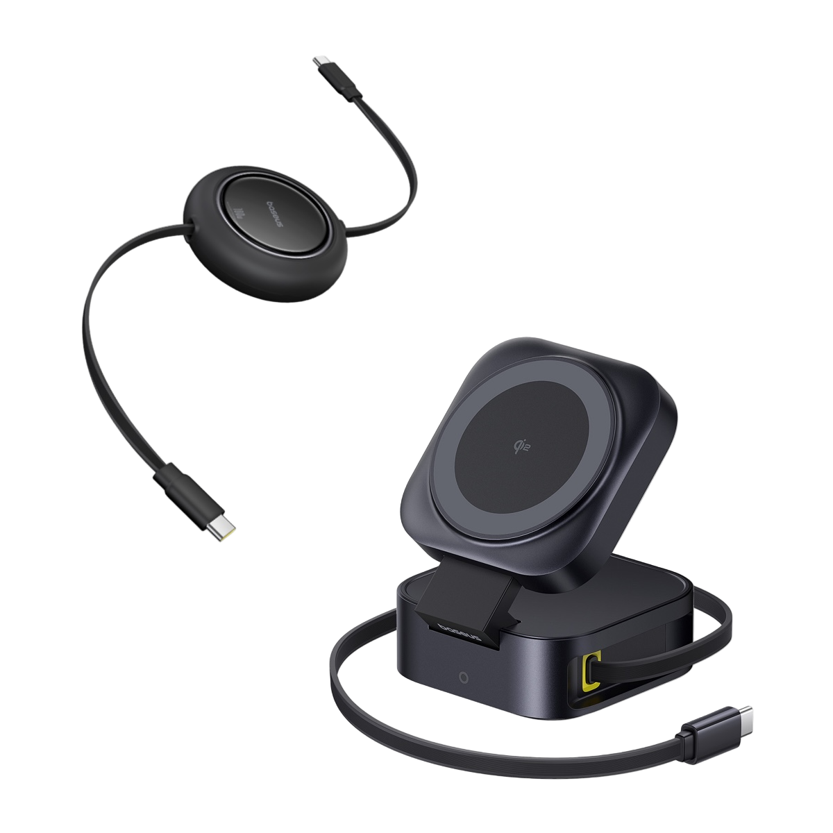 Bezdrôtová nabíjačka Baseus Nomos Qi2 140W USB, 2xUSB-C, s navíjacím káblom USB-C/sieťový kábel 1m čierna