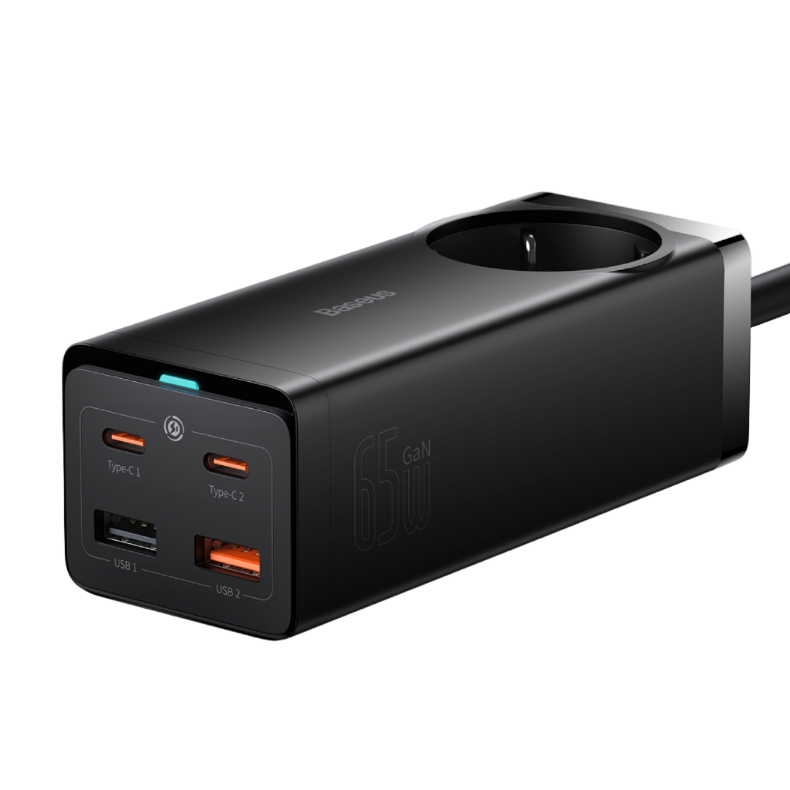Nabíjacia stanica Baseus PowerCombo 5v1 - 65W 2x zásuvka, 1xUSB, 1x USB-C, 1x sťahovací kábel USB-C čierna